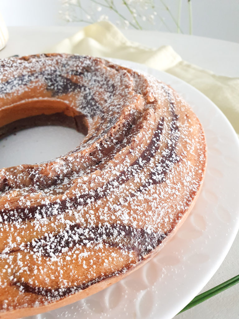 Pour une cuisson idéale, préchauffe ton four à 180C et enfourne le gâteau marbré durant 40 minutes. Pour la présentation, saupoudre-le de sucre glace et ajoute quelques noisettes caramélisées pour une touche élégante et gourmande.